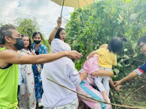 ทั้งนี้ หลังเกิดเหตุ ยิว ฉัตรมงคล สามีได้เดินทางนำรถยนต์อีกคันมารับภรรยาและลูก