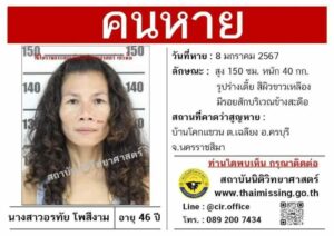 กรณีในโลกออนไลน์ได้มีการโพสต์ประกาศตามหาคนหาย คือ นางสาวอรทัย โพสีงาม อายุ 46 ปี หายตัวไปตั้งแต่