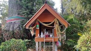 นางสงัด กล่าวต่อว่า เมื่อมาถึงบริเวณต้นยางใหญ่จะพบศาลเจ้าที่อยู่ในบริเวณต้นยางตนจึงยกมือไหว้เจ้าที่ขอพรให้พบตัวเลขตามความฝัน เพื่อจะนำไปเสี่ยงโชค หลังจากนั้นตนกับเพื่อนบ้านที่มาด้วยกันต่างคนก็พยายามมองไปทั่ว ๆ ต้นยางนา