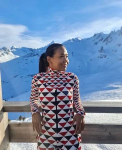 “และด้วยความที่มาถึงปุ๊บด้วยธรรมเนียมฝรั่งเศสหรือว่าด้วยอะไรก็ไม่รู้ มาจุ๊บแก้มซ้ายขวา ซึ่งแค่ 2 ทีก็น่าจะพอแล้วนะ แต่นี่ก็ล่อไปเป็น 10 เลยนะ พูดเลยนะคะ ว่าเรื่องนี้จะเป็นแรงบันดาลใจให้กับหญิงไทยทุกคน ว่าอยู่เมืองไทยเราอาจจะงั้นๆ ไปเมืองฝรั่งปุ๊บ คุณคือของหายาก ซึ่งทั้งลานสกีฉันโดดเด่นมากนะคะ” “และเขาก็ไม่รู้ว่าเราเป็นใคร ซึ่งพอวันที่ 2 เขาเพิ่งรู้ว่าเราเป็นใคร เพราะเขามานัดอีก นัดกินข้าวกลางวันกันอีกไหม(ตอนนี้ยังติดต่อกันอีกไหม?) นิดๆ หน่อยๆ เอาจริงๆ เขาก็น่ารัก และถือว่าเป็นประสบการณ์ดีๆ ในการไปต่างประเทศ”