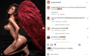 เป็นอีกหนึ่งสาวที่ออกมาเผยภาพแซ่บต้อนรับเดือนแห่งความรัก สำหรับ กระแต อาร์สยาม ที่ล่าสุด (1 กุมภาพันธ์ 2567) ก็ทำเอา IG แทบลุกเป็นไฟไปกับความฮอตของเจ้าตัว ที่แต่งเป็นนางฟ้าปีกแดง เวอร์ชั่นร้อนแรงสุด ๆ กับงานเผยผิว เปลือยทั้งร่าง ติดแค่ปีกนางฟ้าสีแดงสดสุดฮอต พร้อมลงแคปชั่นว่า “unleash your inner desire and ignite those fiery connection #valentines”