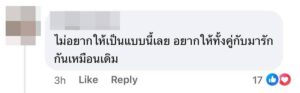 ท่ามกลางแฟนๆ ที่เข้ามาให้กำลังใจและเชียร์ให้กลับมาจีบกันใหม่ อาทิ สู้ๆ เด้อน้องแพรวพราว เดินหน้า, เป็นกำลังใจให้เสมอนะคะบอส, รักกตัวเองให้มากๆ นะคะ ทั้งสวยเก่งขนาดนี้ไม่ต้องกลัว เดินหน้าต่อไปขอเป็นกำลังใจให้นะคะ, กลับมาจีบกันใหม่จ้า อยากให้กลับมารักกันคือเก่า, ต่างคนต่างโสด งั้นแม่แพรวก็จีบพ่อบิ๊กสิ โสดแล้วนี่ เป็นต้น