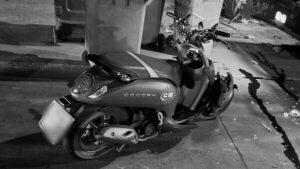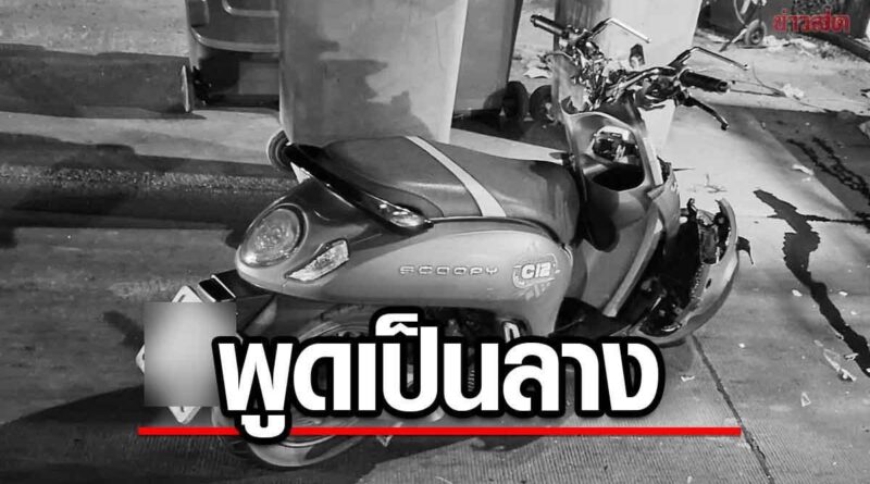 ใกล้กันพบรถจักรยานยนต์ ยี่ห้อฮอนด้า สกู๊ปปี้ไอ ทะเบียน 6ขน3238 กทม. ของผู้ตาย สภาพล้มคว่ำ ด้านหน้าพังยับเยินอยู่ท้ายรถเก็บขยะของ อบต.บ้านเก่า ทะเบียน 86-2673 ชลบุรี ซึ่งมีพนักงานกำลังเก็บขยะด้วยใบหน้าตกใจ เผยว่าไม่รู้ผู้ตายขับมาชนได้ยังไง