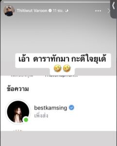 และล่าสุดนั้น ก็ทำเอาแฟนคลับถึงกับกรี๊ดลั่น เมื่อยูทูบเบอร์สาวสุดสวย อย่างสาวเบสท์ คำสิงห์ ก็ได้ DM หาผู้ใหญ่บ้านฟินแลนด์เช่นกัน งานนี้ทำเอาผู้ใหญ่บ้านถึงกับอดดีใจไม่ไหว แคปหน้าจอลงสตอรี่ พร้อมแคปชั่นว่า เอ้าดาราทักมา กะดีใจยุเด้