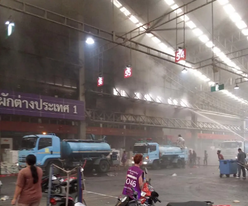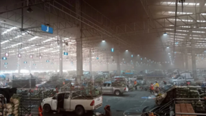 ที่เกิดเหตุพบเพลงลุกไ หม้ บริเวณโซนตลาดผักต่างประเทศ 1 อย่างรุนแรง เจ้าหน้าที่ระดมฉีดน้ำสกัดไ ฟไม่ให้ลุกลามไปยังข้างเคียง ใช้เวลาประมาณ 20 นาทีจึงควบคุมเพลงไว้ได้แต่ยังมีกลุ่มควันลอยเต็มพื้นที่ขายผัก