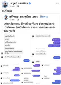 ซึ่งแคปชั่นคือ “แฟนคลับทุกคน มีคนทักมาจีบค่ะ ช่วยดูหน่อยค่ะ เป็นใครคะ จีบจริงไหมคะ ช่วยตรวจสอบหน่อยค่ะ ขอบคุณค่ะ” เห็นแล้วต้องร้องว้าว เพราะคนที่ทักมาคือ ครูไพบูลย์ทักจีบหนูรัตน์
