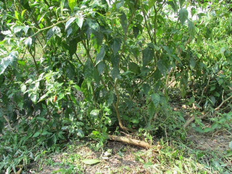 ระหว่างสนทนาลุงดำเก็บเม็ดพริกสีแดงสดเม็ดสวยมาให้ดูจำนวนหนึ่งแล้วบอกว่าคราวที่ปลูกพริกไว้ยังไม่ได้คิดอะไรครั้นพอเกิดน้ำท่วมขึ้นชาวบ้านจึงต้องใช้เส้นทางที่ปลูกพริกนี้สัญจรเพื่อหลบน้ำคนเดินบ้าง สุนัขเดินบ้าง ได้เหยียบย่ำต้นไม้หลายชนิด รวมถึงต้นพริกที่ปลูกไว้ด้วย