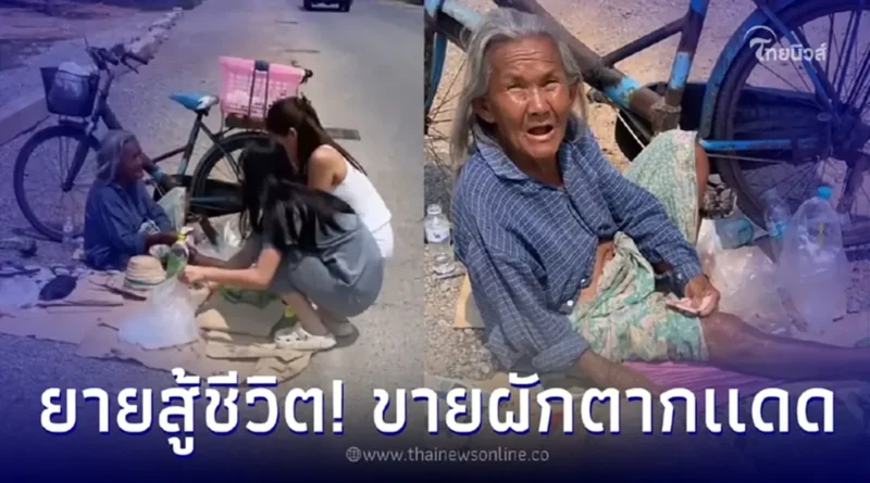 คุณยายสู้ชีวิต! ตากเเดดขายผักริมถนน โชคดีเจอสาวใจบุญ ช่วยเหมาหมด