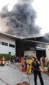 ระทึกเพลิงไหม้โกดัง CP คนงานวิ่งหนีตาย บาดเจ็บชุลมุน