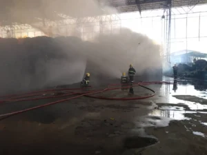 องค์กรปกครองส่วนท้องถิ่นในพื้นที่ จ.สมุทรสาคร นำรถดับเพลิงกว่า 16 คัน พร้อมเจ้าหน้าที่ เข้าระงับเหตุ ขณะนี้อยู่ในระหว่างการควบคุมเพลิง