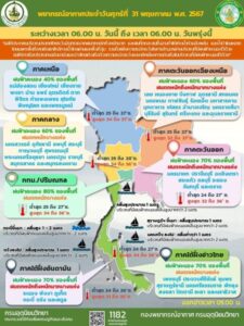 อนึ่ง หย่อมความกดอากาศต่ำกำลังแรงที่ปกคลุมบริเวณทะเลจีนใต้ตอนกลางได้ทวีกำลังขึ้นเป็นพายุดีเปรสชันแล้ว คาดว่าจะมีแนวโน้มเคลื่อนเข้าใกล้ชายฝั่งประเทศจีนตอนใต้ในช่วงวันที่ 31 พ.ค. – 1 มิ.ย. 67 หลังจากนั้นจะอ่อนกำลังลงตามลำดับ