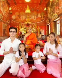 บอกเลยว่าน่ารักทั้งครอบครัวเลยทีเดียวสำหรับ กุ๊บกิ๊บ – บี้ ที่ล่าสุดได้พาลูกๆไปร่วมงานบวชทั้งบ้าน บอกเลยว่าแต่งตัวในธีมเดียวกันดูแล้วน่ารักมากๆค่า