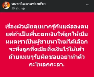 เรื่องผัวเมียคุยยากรู้กันแค่สองคนแต่ถ้าเป็นพี่นะยกเงินให้ลูกให้เมียหมดเราเป็นผู้ชายหาใหม่ได้เลือกจะทิ้งลูกทิ้งเมียทิ้งเงินไว้ให้เค้าด้วยแมนๆรับผิดชอบอย่าทำตัวกะโหลกกะลา.