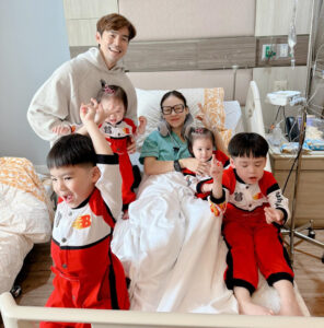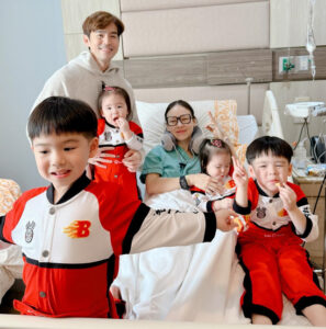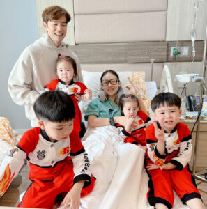 งานนี้ บีม นอกจากจะไปเฝ้าภรรยาแล้ว ยังพาลูกๆมาให้กำลังใจหม่ามี้ถึงขอบเตียงเลย