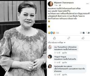 เมื่อทางผ่านเฟซบุ๊ก Wipavee Charoenpura ซึ่งเป็นเฟซบุ๊กของ กุ้ง วิภาวี เจริญปุระ โดยเธอได้ลงเป็นภาพ แม่แอ๊ด พร้อมแคปชันเศร้าระบุว่า ขอแสดงความเสียใจกับครอบครัวอย่างที่สุด ของ แม่แอ๊ด โฉมฉายฉัตรวิไล
