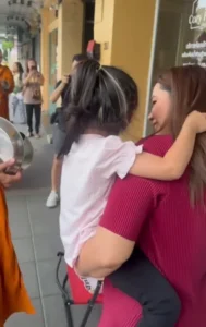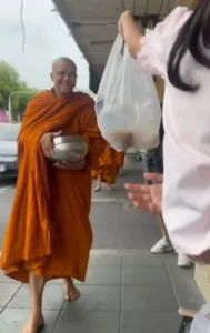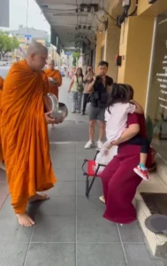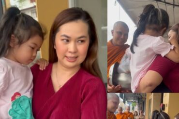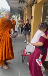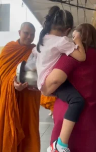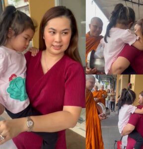 บอกเลยว่าเป็นภาพที่ประทับใจมาก! เมื่อได้เห็นลูกสาวมาใส่บาตร สำหรับ “พระหนุ่ม กะลา” ที่ก่อนหน้านีได้เข้าพิธีบวช ณ วัดบวรนิเวศ และหลังจากนั้น 10 วันก็ไปจำพรรษาที่วัดป่าต่างจังหวัด