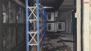 เมื่อเจ้าหน้าที่เปิดประตูเข้าไปดูถึงกับผงะ เมื่อภายในเปิดเป็นเหมืองเหรียญบิตคอยน์ และอุปกรณ์ต่อพ่วง มีการต่อแบ่งเป็นห้องๆ และยัง พบเครื่องขุดบิตคอยน์ อุปกรณ์ต่าง ๆ ที่ใช้เป็นเซฟเวอร์สำหรับเหมืองสกุลเงินดิจิทัล (Cryptocurrency) แบบ Cloud Mining และด้านหลังของโรงงานยังมีการนำตู้คอนเทนเนอร์มาทำเป็นเหมืองบิตคอยน์อีก 3 ตู้ ด้วยกัน รวมแล้วติดตั้งไว้กว่า 700 เครื่อง.
