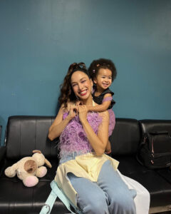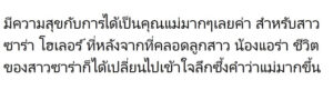 ในบางครั้งซาร่ายังพาลูกสาวไปออกงานด้วย ทำให้คุณแม่มีกำลังใจ