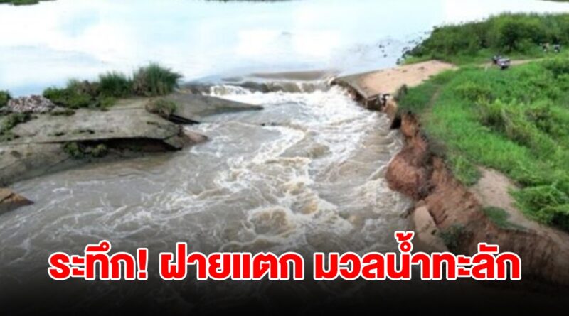 ระทึก! ฝายแตก มวลน้ำไหลทะลัก พนังดินพังทลาย