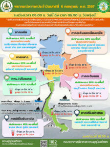 ออกประกาศ 06 กรกฎาคม 2567 พยากรณ์อากาศสำหรับประเทศไทย 06:00 น. วันนี้ ถึง 06:00 น. วันพรุ่งนี้