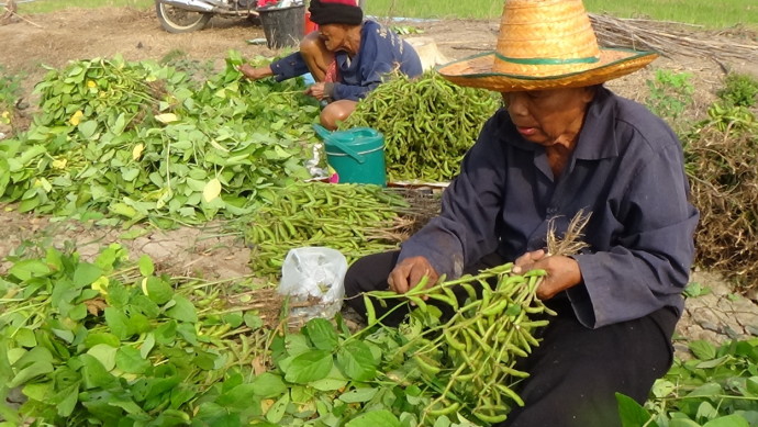 นอกจากนั้นยังได้ช่วยเหลือเพื่อนบ้านที่สูงอายุ และชาวบ้านที่ว่างงานจากภัยแล้งมาเป็นแรงงานในการเก็บและคัดเลือกถั่วแระในแปลงนา เป็นการสร้างรายได้อีกทางหนึ่งให้กับชาวบ้าน ซึ่งการปลูกถั่วแระนั้นลงทุนต่ำ และใช้น้ำน้อยกว่าการทำนา การดูแลรักษาง่าย ขอแค่มีเพียงตลาดรับซื้อ และราคาที่มาตรฐาน ก็ทำให้เกษตรกรที่หันมาปลูกพืชใช้น้ำน้อย เช่นการปลูกถั่วแระก็มีรายได้อย่างงาม ในการหาเลี้ยงครอบครัวสู้ภัยแล้งผ่านวิกฤตไปได้อย่างสบาย