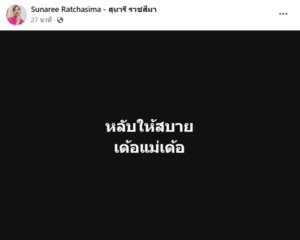 ล่าสุด ทางสุนารี ได้ออกมาโพสต์ผ่าน Sunaree Ratchasima – สุนารี ราชสีมา โดยได้ระบุข้อความว่า หลับให้สบาย เด้อแม่เด้อ โดยได้จากไปอย่างสงบ ในวัย 97 ปี