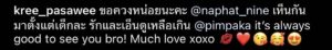 “คือ ต้องบอกว่า เป็นคนที่มายเซ็ทดี โดยเนื้อแท้ แม่เขาสอนมาดีมาก สิ่งที่น้องนายต่างจากเดิมคือ พูดเก่ง เพราะเมื่อก่อนแทบจะไม่พูดเลย ต้องบอกว่า รักแม่หมู น้องนายจริงๆ แม้ตอนนี้จะมีชื่อเสียงมาก แต่มีงานอะไรก็คอยช่วยเหลือกันตลอด มีโอกาสได้พูดคุยกันบ้าง แต่ไม่เคยถามเรื่องส่วนตัว รวมถึงเรื่องที่เลิกกับแฟนด้วย”