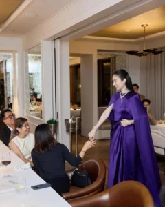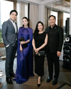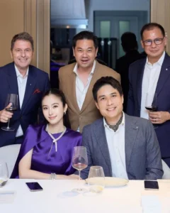 โดยทางด้าน ปอย ตรีชฎา มาในชุดเดรสยาวสีม่วงหรูหรา ดูสวยงามและน่ามอง พร้อมยืนเคียงข้างสามีในงานปาร์ตี้ BMW และพูดคุยพบปะผู้บริหารระดับสูง
