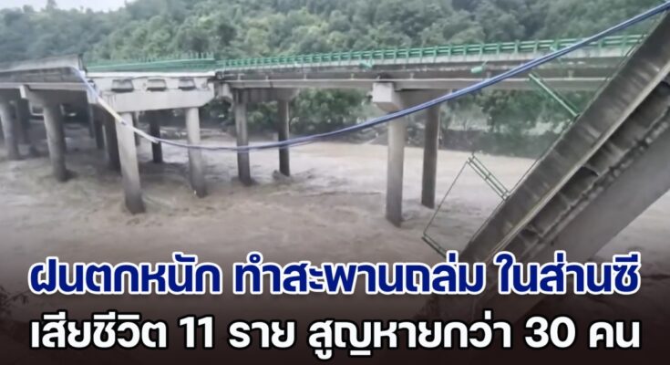 ฝนตกหนัก ทำสะพานถล่ม ในส่านซี รถบางคันร่วงลงสู่แม่น้ำจินเฉียน เสียชีวิตแล้ว 11 ราย สูญหายกว่า 30 คน