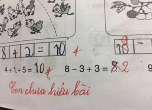 ดังเช่นกรณีที่เกิดขึ้นในประเทศเวียดนาม เมื่อสมุดการบ้านของนักเรียนคนหนึ่งกลายเป็นประเด็นร้อนบนโลกออนไลน์ หลังมีโจทย์กำหนดให้นักเรียนคำนวณ 8 – 3 + 3 = ? ซึ่งนักเรียนเจ้าของสมุดให้คำตอบเป็น 8 แต่สุดท้ายกลับถูกคุณครูขีดกากบาทและเปลี่ยนคำตอบเป็น 2 และที่มากกว่านั้นคือ ครูยังเขียนคอมเมนต์ระบุว่า นักเรียนคนดังกล่าว ไม่เข้าใจบทเรียน