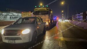 ชะตาขาด! หนุ่มขับกระบะชนขอบถนนเลยลงมาดู ถูก 6 ล้อขับมามองไม่เห็นเหยียบร่างดับคาที่