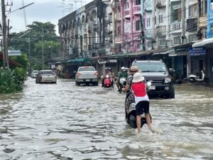 ปักธงแดง วิกฤตแม่น้ำจันทบุรี ฝนตกหนัก น้ำป่าไหลหลาก เอ่อท่วมหลายพื้นที่
