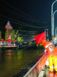 เมื่อวันที่ 29 ก.ค.67 เพจ บิ๊กเกรียน ได้โพสต์ข้อความระบุว่า ฝนตกหนัก น้ำป่าไหลหลาก เอ่อท่วมหลายพื้นที่ จังหวัดจันทบุรี บริเวณสะพานแม่น้ำจันทบุรี วัดจันทนาราม เจ้าหน้าที่ สำนักงานป้องกันและบรรเทาสาธารณภัยจังหวัดจันทบุรี นำ ธงแดง มีติดแทน “ธงเหลือง” เป็นการแจ้งเตือนให้ประชาชนเฝ้าระวังสูงสุด ภายหลังระดับน้ำในแม่น้ำจันทบุรี ใกล้ถึงจุดวิกฤต