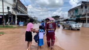 แม่น้ำป่าสักเอ่อล้นตลิ่ง น้ำท่วมโรงเรียนสั่งปิดฉุกเฉิน ให้นักเรียนกลับบ้านทันที