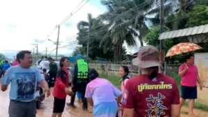 กระทั่งช่วงเช้าที่ผ่านมาน้ำเอ่อล้นตลิ่งบางจุด และไหลเข้าท่วมพื้นที่เทศบาลตำบลตาลเดี่ยว อ.หล่มสัก จ.เพชรบูรณ์ โดยเฉพาะบริเวณถนนหน้าวัดศรีสะอาด ชุมชนบ้านศรีสะอาด น้ำได้ท่วมสูงประมาณ 70 ซม.ชาวบ้านไม่สามารถผ่านเข้า-ออกได้ ต้องใช้เรือท้องแบนของอาสามูลนิธิกกไทรมาคอยรับส่ง