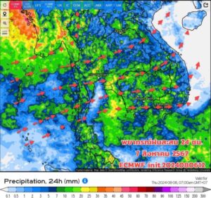 ช่วง 11-16 ส.ค.67 ฝนจะเพิ่มขึ้น มรสุมเริ่มมีกำลังแรงขึ้น ต้องเฝ้าระวังและติดตาม ระยะนี้ยังไม่พบสัญญาณการก่อตัวของพายุหมุนเขตร้อนใกล้บริเวณประเทศไทย (ข้อมูลนี้ใช้เป็นแนวทางในการติดตามสภาพอากาศ ยังต้องติดตามด้วยข้อมูลจากผลการตรวจอากาศอื่นๆ ร่วมด้วย (ข้อมูลนี้อาจมีการเปลี่ยนแปลง ตามข้อมูลนำเข้าใหม่))