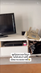 จากนั้นได้จ้างแม่บ้านมาทำความสะอาดบ้านยกหลัง กองขยะเอาใส่ถุงดำขนาดยักษ์เต็มไปหมด ตู้ที่พังก็ต้องเข็นออก ใช้ไม่ได้แล้ว