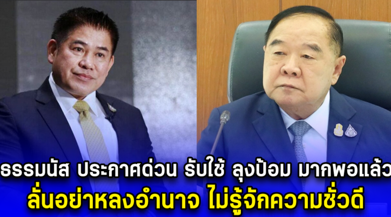 ธรรมนัส ประกาศด่วน รับใช้ ลุงป้อม มามากพอแล้ว ลั่นอย่าหลงอำนาจจนไม่ลืมหูลืมตา ไม่รู้จักความชั่วดี