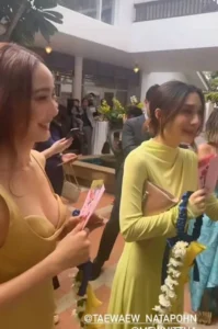 แล้วนอกจากนี้ทางด้านนางเอกสาวชื่อดังแต้วณฐพรก็ได้มาร่วมงานด้วยบอกเลยว่าออร่าความสวยมาเต็มมากหลายคนทักเป็นเสียงเดียวกันว่าออร่าเจ้าสาวคนต่อไปออร่าจับสุดๆ