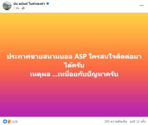 โดย นัน โพสต์ข้อความว่า “ประกาศขายสนามบอล ASP ใครสนใจติดต่อมาได้ครับ เหตุผล …เหนื่อยกับปัญหาครับ”