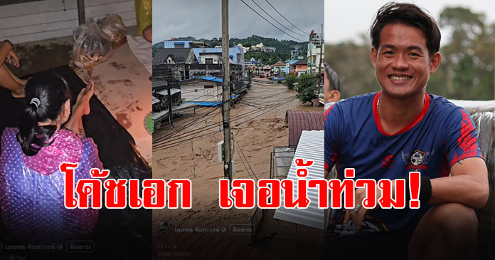 ซึ่ง โค้ชเอก เอกพล อดีตโค้ชผู้ช่วยประจำทีมหมูป่าอะคาเดมี่ ที่เคยเข้าไปติดภายในถ้ำหลวงขุนน้ำนางนอน ที่มีบ้านพักใน อ.แม่สาย ก็ได้รับผลกระทบจากน้ำท่วมครั้งนี้ด้วย