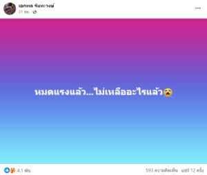 โดย โค้ชเอก โพสต์ข้อความว่า “หมดแรงแล้ว…ไม่เหลืออะไรแล้ว”