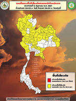 พยากรณ์อากาศสำหรับประเทศไทยตั้งแต่เวลา 06.00 น. วันนี้ ถึงเวลา 06.00 น.วันพรุ่งนี้