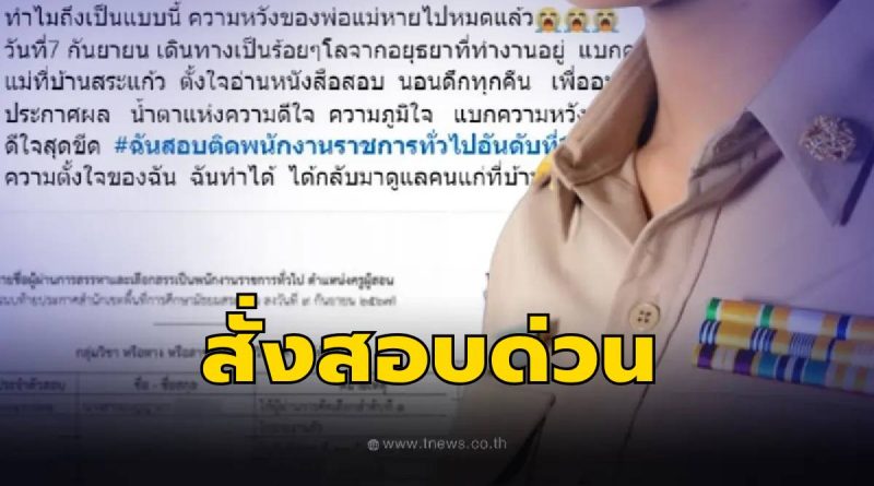 สั่งสอบ ผอ.สพม.สระแก้ว หลังสาวสอบติดครูอันดับ 1 แต่ชื่อหาย