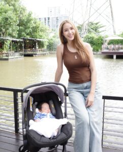 งานนี้แห่ชมความสวยของคุณแม่อย่างมาก แถมหุ่นดีจนไม่อยากจะเชื่อเลยว่าเพิ่งคลอดลูกจริงๆ