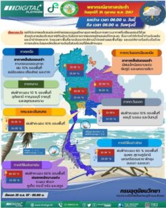 เนื่องจากช่วงเวลาดังกล่าวจะมีมวลอากาศเย็นแผ่ลงมาปกคลุมอยู่ด้านหน้าของ พายุ ส่วนภาคกลาง ภาคตะวันออก กทม. ปริมณฑล จะมี ฝนฟ้าคะนอง เพิ่มขึ้นในวันที่ 27 ต.ค. 2567 ยังต้องเฝ้าระวัง
