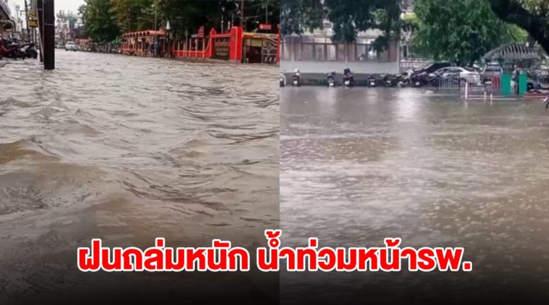 ฝนถล่มหนัก น้ำท่วมหน้ารพ. คนไข้เข้าออกลำบาก รถติดหนัก