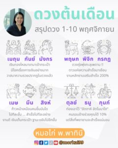 หลายคนคงรู้จักกันดีอยู่แล้ว สำหรับ หมอไก่ พ.พาทินี นักดูดวง นักพยากรณ์ของประเทศไทย ล่าสุดเปิดดวงต้นเดือน สรุปดวง 1 พฤศจิกายน 2567 ทั้ง 12 ราศี โดยมีดังนี้