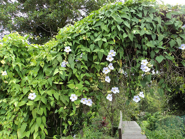 ลำต้น จะเลื้อยพาดพันไปตามต้นไม้หรือเสารั้ว ขนาดเถาส่วนโคน 0.8-1.5 เซนติเมตร และค่อยๆลดขนาดลงตามความยาวของเถา ส่วนความยาวจะยาวได้มากกว่า 10 เมตร เถามีลักษณะค่อนข้างกลม และเป็นข้อปล้อง เถาส่วนโคนมีสีเขียวอมน้ำตาล เถาอ่อนหรือเถาส่วนปลายมีสีเขียวเข้ม มีขนปกคลุม เนื้อไม้เป็นไม้เนื้ออ่อน หักง่าย แต่ค่อนข้างเหนียว แก่นในสุดเป็นเยื่ออ่อนเป็นวงกลม