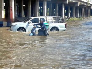 อ่วม! น้ำทะเลหนุนท่วมสูงมาก รถเล็กเริ่มจะวิ่งผ่านไม่ได้